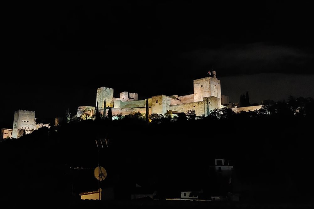 Con l’arrivo della notte, il mirador si trasforma in un angolo intimo e silenzioso. L’Alhambra, illuminata da una tenue luce dorata, sembra fluttuare nell’oscurità, riflettendosi delicatamente nello stagno della placeta. L’atmosfera è serena, quasi magica, e consente di ammirare il monumento nazarí in tutta la sua maestosità. È il luogo ideale per fermarsi, respirare e lasciarsi avvolgere dalla tranquilla bellezza di Granada sotto le stelle.