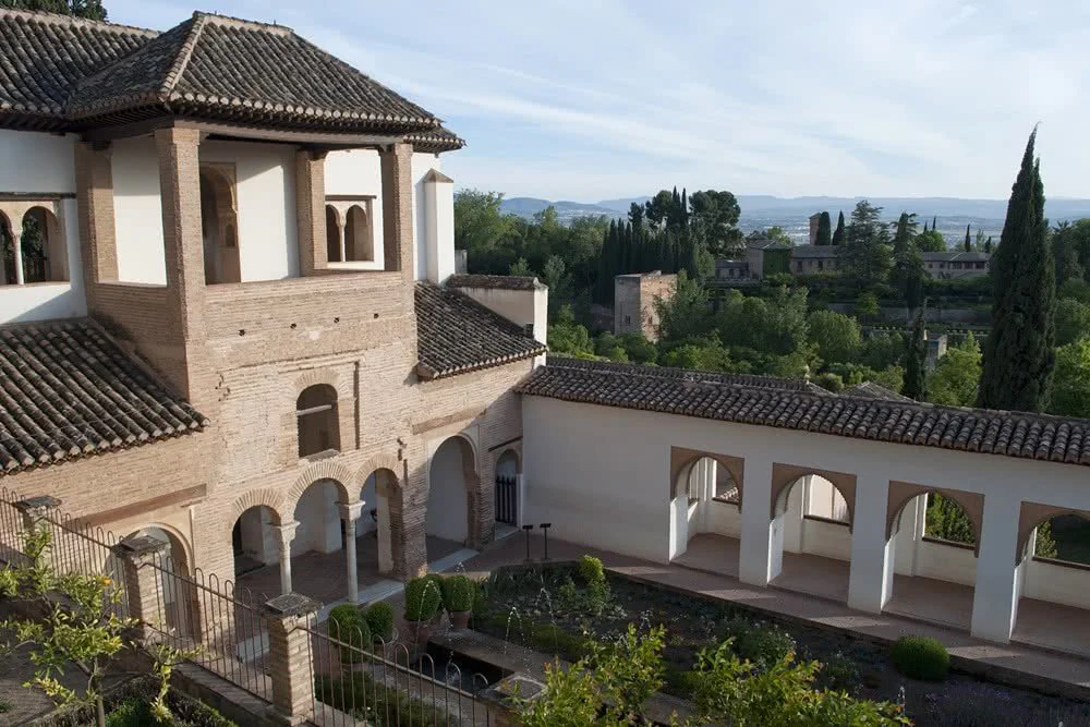 O Generalife, Yannat al-Arif ou «jardim do arquiteto», deve ter sido a propriedade mais destacada entre as que se estendiam pelos arredores da Alhambra. Trono da Alhambra é como Ibn Zamrak, o grande poeta da Granada de Mohamed V, a descreve. A primeira referência a esta propriedade aparece na *Ihata* de Ibn al-Jatib, que a inclui entre as dezessete hortas pertencentes ao Patrimônio Real, destacando a densidade de suas árvores, que impediam a passagem dos raios solares, e o encanto e frescor de suas águas e brisa.